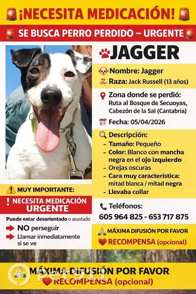 Pet911.esTorrelavegaPerdidoPerrosPerdido perro masculino, Cabezón de la Sal, Torrelavega - Jack Russell blanco con parche negro