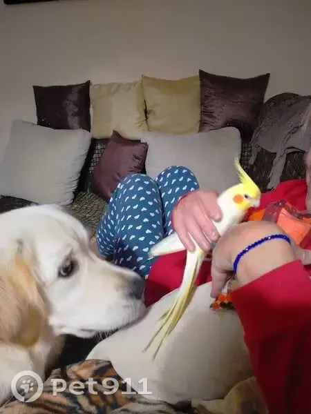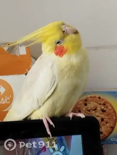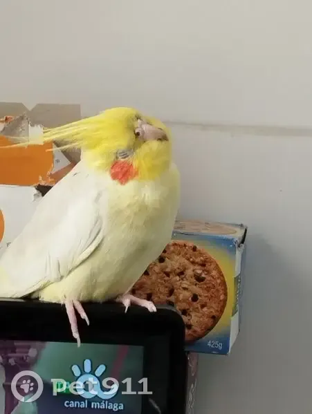 Ninfa color amarillo y mofletes naranja.... Responde por Lolo.... Tiene 7 años y lo cogí papillero y es uno más de la familia.... Canta star ward y dice que pasa hombre.... Anilla azul en la pata y se escapó buscándome por la ventana.....