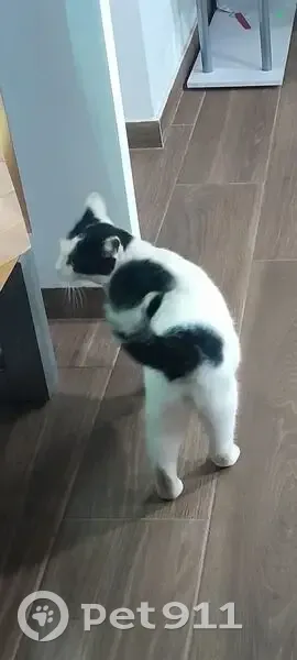 Es una gato blanco con manchas negras, , tiene 7años de vida , vivía en nuestra urbanización , pero hace más de un mes que no le veo, estamos preocupados