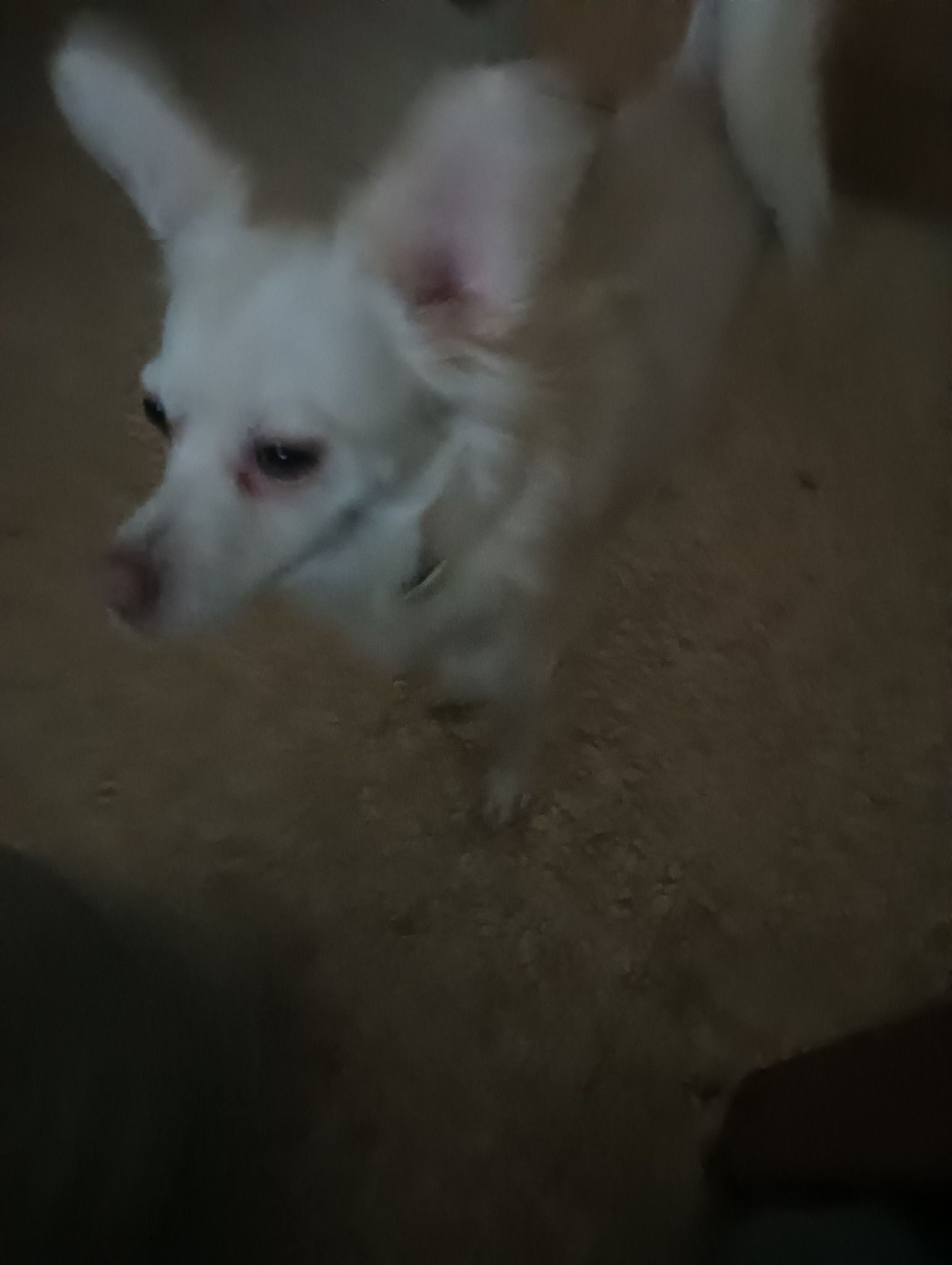 Es una perra Blanca con un collar rosa con un collar antiparasitario, muy asustona con los desconocido por eso aviso que si van a cogerla esta podria corre o en el peor de los caso morder, se escapo de casa en un descuido por mis padres pues habia niños tirando petardo en la calle