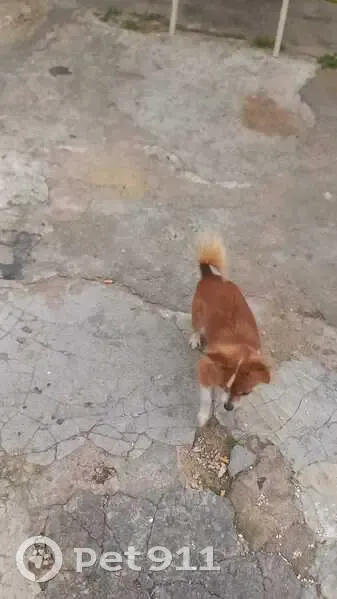 Tiene una raya blanca en la cabeza , parece un mini zorrito , también lleba una orejita caida cuando las levanta ,es pequeña ,y para pedir algo se pone a dos patitas