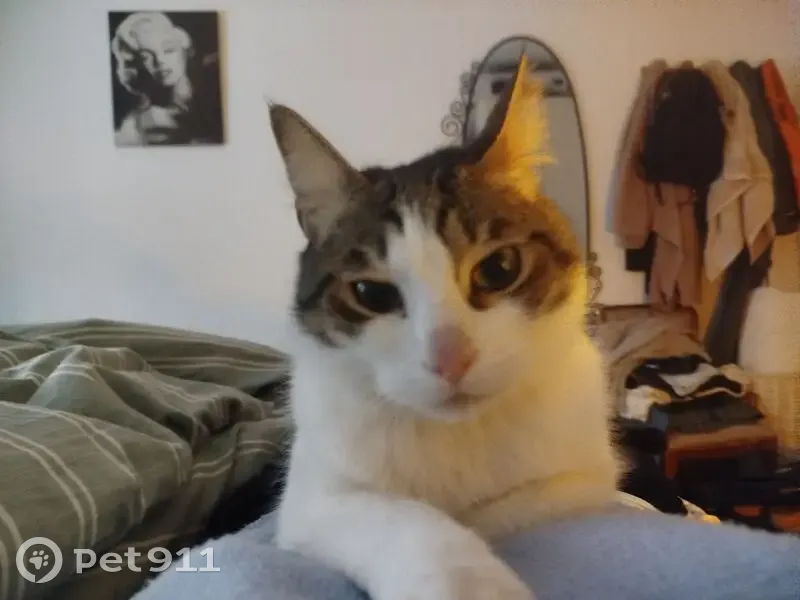Es un macho joven esterilizado, tendrá me os de un año, unos 8 meses o 10 aproximadamente. Es blanco con manchitas atigradas, muy cariñoso, le encanta el contacto humano. Me lo encontré dentro de un edificio, pero no era de ningun vecino...