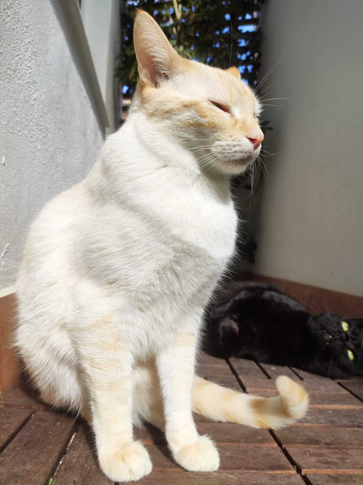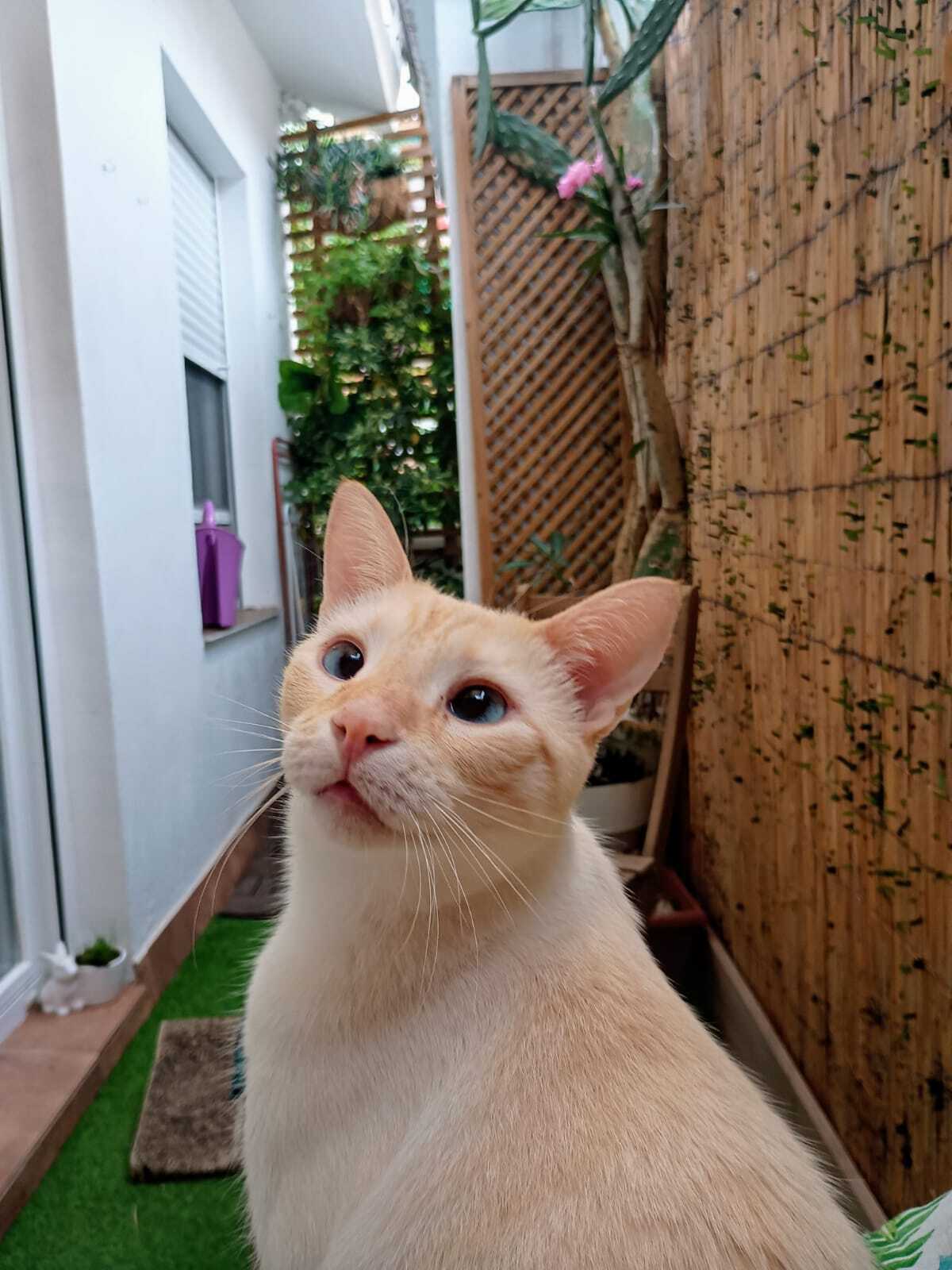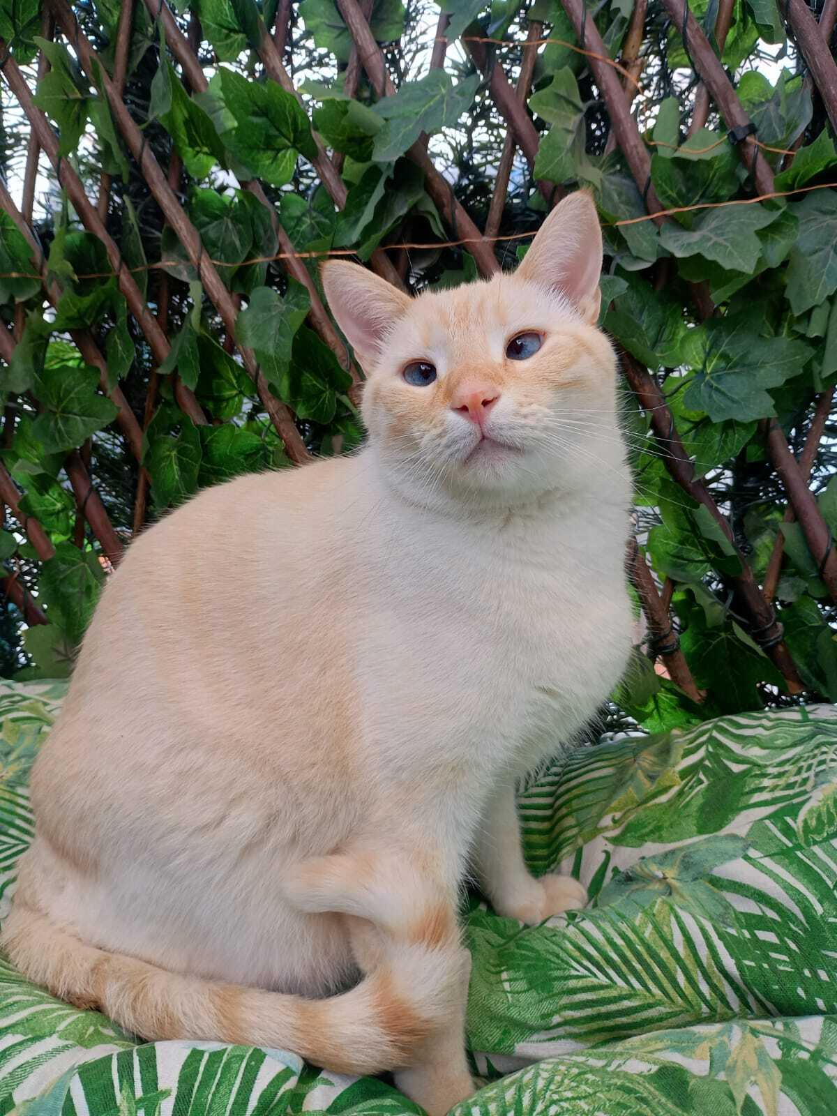 Es blanco con rallas naranjas a lo largo de todo el cuerpo. Es muy miedoso pero bueno, lo echamos mucho de menos y estamos muy preocupados. Se ofrece recompensa, por favor, ayúdanos a encontrarlo.